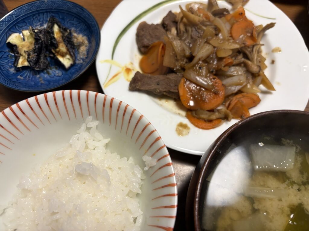 大根とわかめの味噌汁とご飯で食べました。
