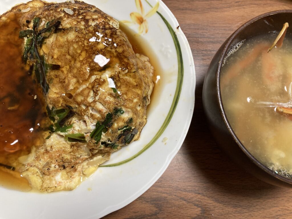 ですが、味噌汁だけじゃもったいないので、かに玉も作ることにしました。