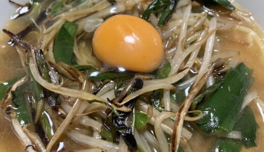 味噌ラーメンにニラもやし炒めをトッピング